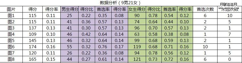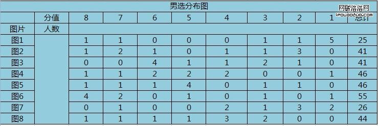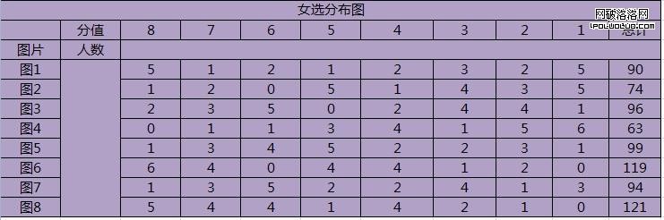 女選得分排名:圖8>圖6>圖5>圖3>圖7>圖1>圖2>圖4