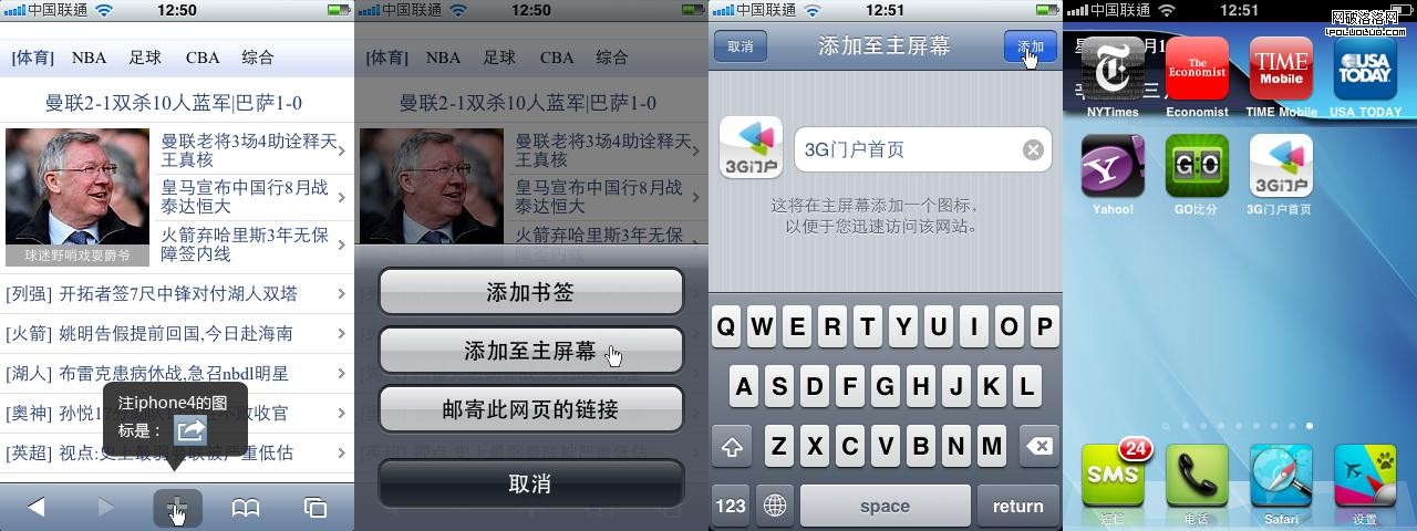 這裡特別介紹下iOS的一個特點,可將網站添加到桌面,並生成一個APP圖標: