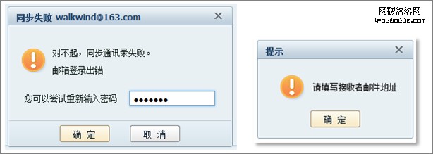 對已經造成的錯誤應該使用錯誤圖標。不嚴重的提示信息,應不使用警告圖標。圖10左右兩圖分別皆為警告圖標錯誤使用。圖11為錯誤圖標使用錯誤。
