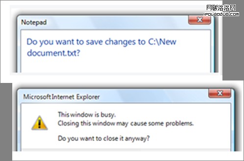標題是用來表示對話框所來自的命令、特性或程序。通常以名詞形式出現。命令形式以冠以“確認”“提示”的用法最為常見,其具有明確的任務導向,如圖2,圖3所示。特性主要是指類似於“設置”“屬性”等作為標題。以程序名稱作為標題形式,表示了對話框的出處,如圖4所示。在標題形式中,並不提倡簡單地使用“提示”作為標題。如圖5所示。
