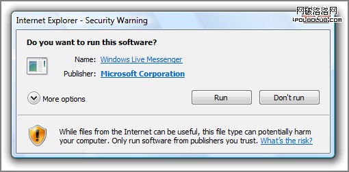 如果用戶只是需要取消對話框而非整個任務的話,應當使用明確針對主標題說明的否定回答按鈕,並不需要“取消”。如圖19例。該對話框是在安裝程序時系統自動彈出的對話框,此時放置“取消”按鈕的話其功能與“don’t run”重合。