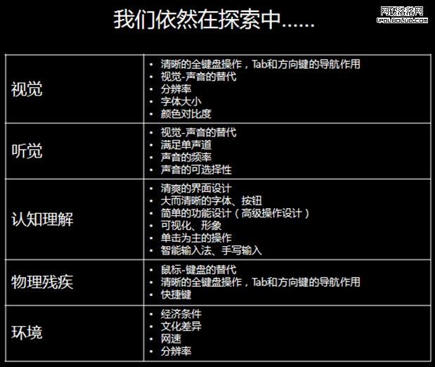 對於關愛設計,我們依然不斷在探索和尋找方法,讓我們的軟件更加適合特殊人群的使用。以上是我們的目前一些發現。時間關系也就不多說了。