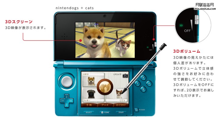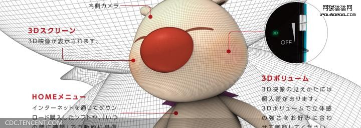 3DS 的正式公開,伴隨的是肉眼可直接觀看3D 效果技術的公開,讓我們可以拋棄3D 眼鏡。而且,任天堂也創造了一個名叫做“3D 音量(3D Volume )”新控件。以下是Nintendo 官網對裸眼功能的一些解釋: