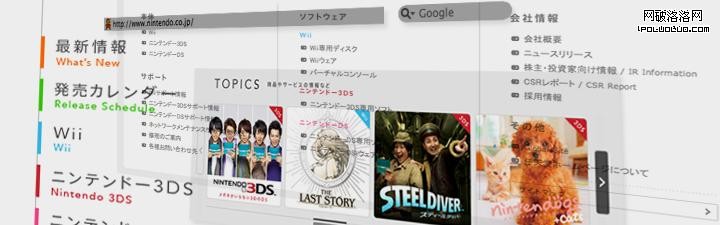 但是在3D 世界裡,上面這種問題就一下子變得不是那麼的明顯了。原因就是,3D 空間的信息不再只是可以向上下左右擴張性的平鋪,同時也可以縱向的進深。控件不再和頁面內容搶占一塊地盤了,它們會分布在不同的層上。甚至網頁本身的內容,也可以分布在不同的層上。所以可能連網頁設計也與現在大不相同了。這樣,我們所有的Layout 和交互都將變得不同。進行創意的空間也變大了。當然,目前更多的應用3D技術的還是電子娛樂領域,在這裡,擴展新奇的娛樂方式是必不可少的。Nintendo作為一個老牌公司,一直很看重游戲性和創意,在這裡祝他們大賣~