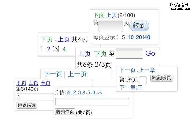 二.在眾多的手機端應用中,還可以看到很多這種來自服務端的翻頁控件,多以一連串文字鏈接的形式展現。通常組成這些控件的可以是以下這些元素: