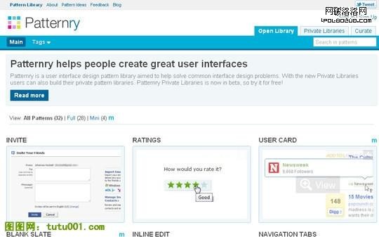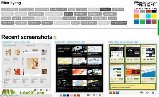 提供一些熱門的用戶UI界面設計模式參考圖,分類很詳細,如果設計網站或UI界面可以上去找一些資源,很不錯。