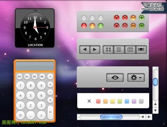 該軟件包含一些常用的Photoshop原文件和PNG文件,這些元素都是用來設計GUI界面的素材,通過該軟件你可以快速制作出一些出色的界面