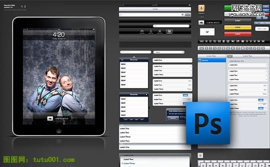 iPad平板電腦上設計布局用的元素集合。