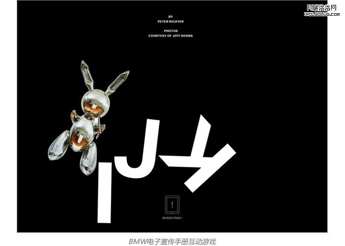 BMW宣傳電子雜志的一項,可晃動的圖像,有相當好的交互性。此處僅僅是一個可玩性一般的游戲,不過考慮到電子雜志客戶端的硬件性能,加入一些有意義的互動設計,可以帶來傳統紙質雜志不能實現的效果。
