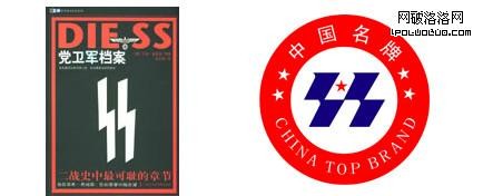 但三角形畢竟是一種很普通的形狀,這樣的聯想,我認為是過度解讀了。 這種令人聯想到與納粹相關的標志,我們國內的也應該挺熟悉的一個,就是中國名牌產品標志與納粹黨衛軍的標志: