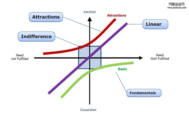 關於無差異品質一般是被我們最後考慮到的。因為80/20原則,我們將無差異品質歸於非主流的需求當中。實際情況中,單一用戶的反饋或者團隊中的某人的個人意見,經常會造成對於某些無差異品質的過度關注。這是對於設計成本的一種損失,要注意,如果可能通過用戶訪談或其他一些方式將其定義為無差異品質,就可以避免在不必要的地方投入過大精力,而集中力量去做最為重要的核心部分。