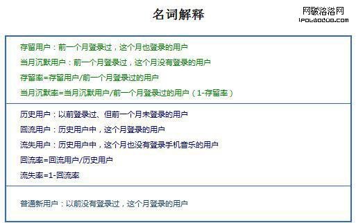 還會涉及到的其他術語有:歷史用戶、回流用戶、存留用戶等。