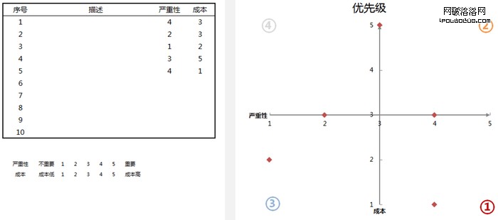 Priority:根據問題的嚴重性和成本綜合考慮,優先解決嚴重且成本低的問題。