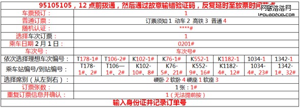 為此,認真研究了95105105電話訂票的程序,在預先確定“車次、發到站、出發時間”的情況下,完全可以大幅縮短通話時間,從而搶得先機!於是,讓朋友按照理想車次、理想席別做出排序,然後套用電話訂票流程,最終為朋友提供了一套給力的訂票攻略,如下圖!