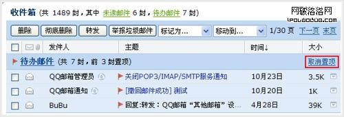 QQmail自動把用戶標記的待辦郵件的前三封置頂顯示