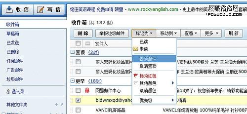 網易郵箱直接新增了”標記為置頂”的功能