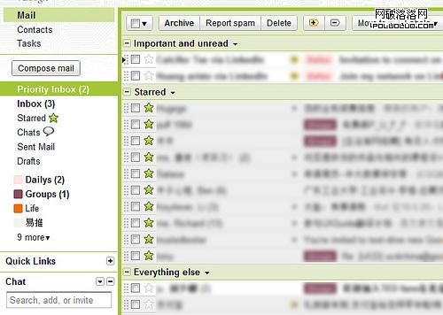 GMail通過新增一個智能判斷的Important標簽和Priority Inbox的組合方式,讓用戶的郵件自動置頂