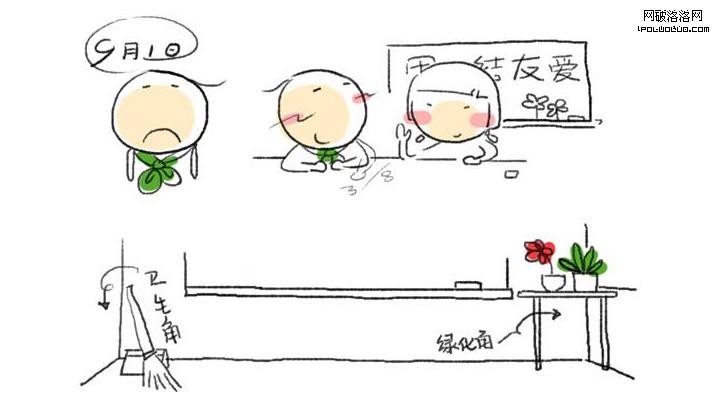 畫面中操場籃球架、紅旗、黑板、課桌等元素,在換了視角後的教室一角的場景,以植物盆栽為主體景物的畫面場景。開學第一天,同學們帶來心愛的小盆栽布置教室,迎接新學期的到來。寓意生機勃勃的新學期和學生的健康成長。最重要的是帶給大家充滿希望與信心的情感,引導積極向上的樂觀情緒。