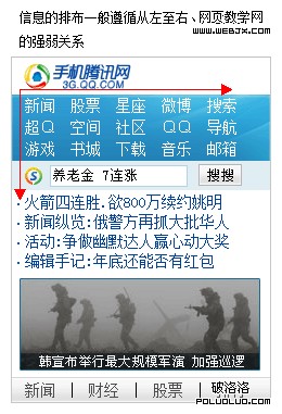 1. 可視區域大,決定了頁面承載的信息量也比鍵盤機要多。現在市場上主流的觸屏手機分辨率為320*480,屏幕寬度最低也是240。這時,如果將適配鍵盤機的WAP頁面放到觸屏機上來看,會出現大面積“被留白”的情況,視覺上將帶給用戶松散的感受。這時我們可以將240px作為基礎寬度進行設計。