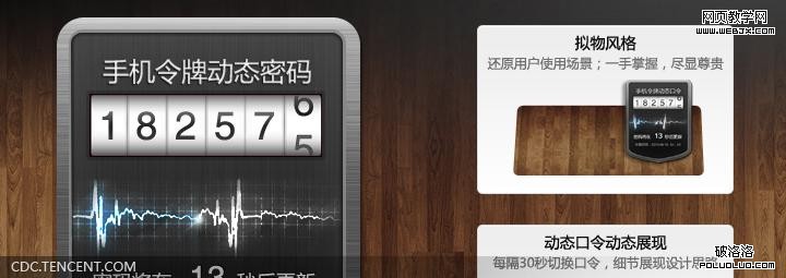 當然單純的盾牌並不能引發視覺沖擊,也不能解決令牌中一堆數字展現的單調乏味。所以我們創造性的引入了類似心電圖的概念,表達了數字更新的同時增添了科技感,而數字的快速翻動和變化的效果,讓數字更換的情景表現的更加淋漓盡致。尤其是有很多用戶反饋,會一直盯著手機屏幕中,動態密碼每隔30秒跳躍的動畫看,也許這就是設計中的細節吸引了用戶,打動了用戶。