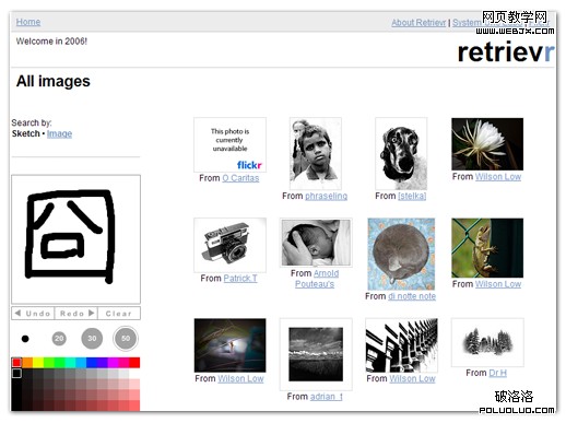 Flickr的老用戶肯定對Retrievr不陌生,這是業內較早提供圖像搜索圖像服務的網站之一。