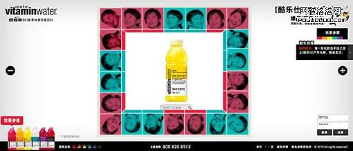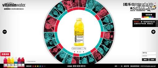 在這個頁面上圓形挑起了大梁,支撐整個頁面,人物笑臉圖片組合的圓形包圍著瓶子,映射了這個飲料帶給我們的快樂。圓形不僅加強了焦點,更加強了頁面的層次感,讓頁面不會單薄,無力度。