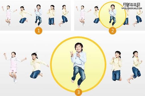 圖3不僅添加圓形背景框,再區分人物大小,主次分明,焦點突出,畫面活躍立體。