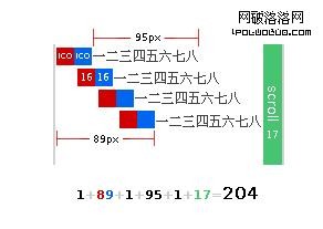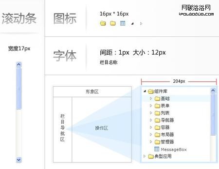 滾動條:17px 圖標:16px 文字(中文宋體):11px 文字間距:1px