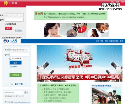 在文案設計上,副標題的文案設計,要求文案簡潔明了、開宗明義,語言、句式的表達需符合網站的整體調性。如人人網的“因為真實,所以精彩”,阿裡巴巴的“全求最大的采購批發市場”,babytree.com的“愛、交流、成長”等等。在產品或勞務宣傳的文案設計上,要求簡短、易懂、描述要完整,語言要情感豐富,具有扇動性,吸引用戶注意力,最終促使用戶付出行動,這就達到了目的(轉化率或點擊率)。顯示的要素通常包括誰/什麼、有多少、何時、何地、如何做、為什麼這六大要素(請參看《餐巾紙的背面》)。如人人網、開心網首頁的主題表現形式。這些應該是文案設計的工作,但現狀是Boss不會專門聘用Copywriter,網頁中的文案一般都是由交互設計師來完成,而小公司是由美工來完成。所以,了解一些文案設計知識是很有必要的。