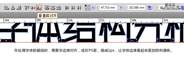 d. 英文的結構有大小不同的形狀,在字形設計上不可能排列在同一條直線上,如gjpqy等字母齊下方的沉降線,而bdfhkl字母上齊頂線,其它字母才齊上中線和下腳線。然而,英文編排時自然產生的錯落其實並不是西方設計師所期望的,他們在細排文字對齊上花大量的時間來調整字距、詞距、行距、段前距、段後距等,使得段落更趨向於幾何形態。