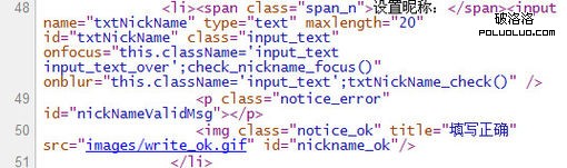 我們來實驗一下將其中的<span class="span_n">設置昵稱:</span>改為<label class="span_n" for="txtNickName">設置昵稱:</label>會產生什麼變化。