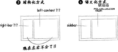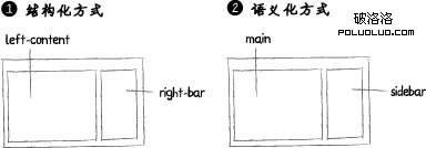 若要改變側欄的位置,只需修改CSS即可,無需改動網頁結構,對於經常出現的頁面模塊,個人推薦在開發過程中逐漸形成自己的命名規范,如header/footer/main/hd/bd/nav/box/mode等,使用連字符“-”或駝峰法形成更為復雜命名,如site-nav/quick-menu/secondaryContent/。