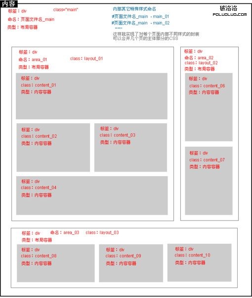 在過去對柵格化和框架的討論中,引出了關於命名規范思考,以下只是對命名方式的討論,並不包含其他因素的影響,最近接觸到一套完善的布局規范,我想,大部分人剛接觸時,都跟我一樣,對這種命名感覺到頭暈“area_01” “layout_01”等,因為從來沒有經歷過像現在團隊所接手項目的龐大規模,所以說不准這種方式到底是否合適,但有一方面是可以肯定的,這確實是增加了新人的學習成本,而對於未來的開發,我認為這種方式也是可取的,畢竟從長遠看,它目的也旨意為了提高團隊中的開發效率和減少沖突,我想,像YUI 、Blueprint、960 Grid System也是這樣應運而生的吧,這只是個人的臆想,希望未來能得到佐證。