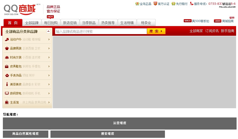 以QQ商城為例:QQ商城的多維度導航主要分為2個維度: