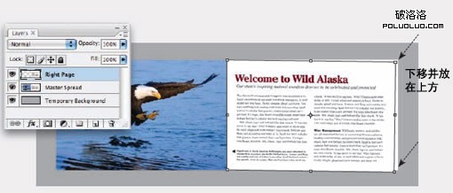 建立一個更小的“頁面”:在版式中創建一個更小的區域,讓周圍留出空白區域,這樣就可以不用去考慮出血位的問題。然後將圖片放在上面即可。這時,周圍的白邊給人的感覺並不象是一條邊界,而超出一點的圖片元素增加了頁面的深度。