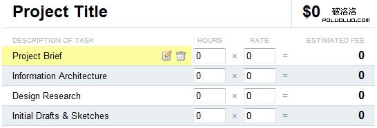 如果有多重操作,可以采取鼠標懸停操作方式,該方式是由行內操作引申而來。鼠標懸停和鼠標離開分別顯示和隱藏操作,通過這種方式可以節省界面空間。Project Estimator by Astuteo 對每一行都有編輯和刪除操作,鼠標懸停到某一行的時候則顯示操作按鈕圖標,離開則不顯示。