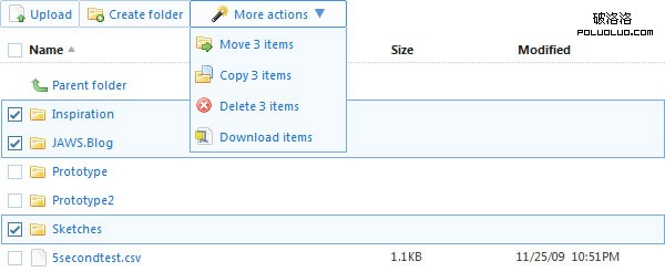 如果每一行裡都有多種操作,可以通過鼠標懸停或者單擊行的時候顯示這些操作。DropBox通過一個二級菜單展示了每個文件的多種操作,有效地使用了這種方式。