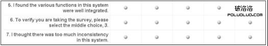 這兒有一些很好的技術來清除這些數據。鑒別(和移除)“精神騙子”並不難。這些人的行為是可以預測的。“扁平化”是指一些人的答案都是1或5,在5個等級量表中。“速度檢測”是一種檢測這些人(看問題6在這幅圖下)的方法,確保他們確實認真閱讀了每一個問題。一致性檢驗可以用重復詞語的問題,並來分析一致性的回答。移除不切實際的任務時間也是很容易的,並能幫助處理那些在任務中間周末回家的參與者。同時,篩選問題可以寫信給那些欺騙性最小的參加調研的參與者(那些偽裝自己的人)。