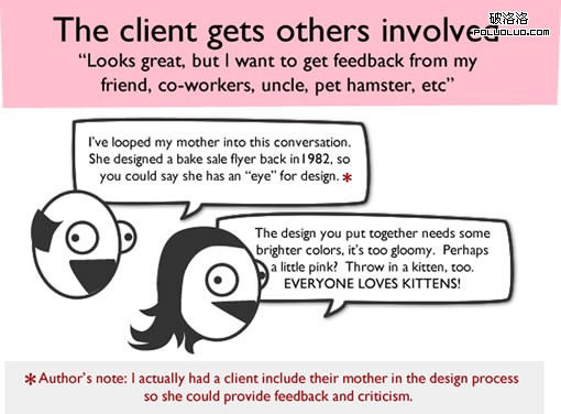 客戶母親:你排的這個設計需要點亮色,看上去太暗了。加點粉色怎樣?再放上一只小貓。人人都愛小貓。