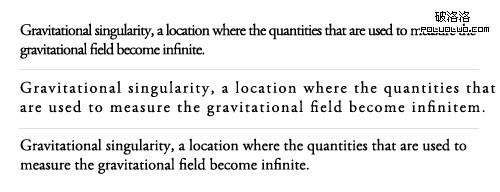當然可閱讀性還取決於其他的重要因素,比如字體的磅數,單詞之間的距離,句子的形式,句子的長度,句子之間的距離,段落之間的關系,還涉及到印刷的質量,字體的色彩,紙張的質量和色彩等眾多的其他因素。