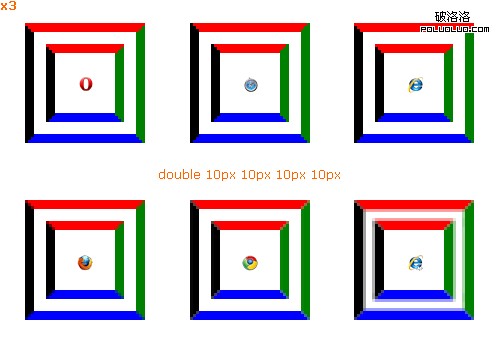下面就是雙線了,這又出了一個問題,就是ie9的雙線是糊的…由於用的是4條等寬邊框,其它看起來似乎都不錯。