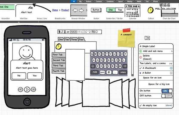 Balsamiq Mockups 提供了 9 大類共 50 多個控件,涵蓋了幾乎所有常用的 UI 控件。不管是桌面軟件、手機軟件還是 Web 站點,都能搞定,且軟件極易上手。Balsamiq Mockups 有許多不足之處,如不能制作交互效果、不能將重復區域做成模塊多次使用。不過Balsamiq Mockups 的免費版本有諸多限制,如無法保存、導出原型圖就極為不便。而收費版本需要 $79,實在太高。但是也有 5 種方法可以免費獲取 license key,可以去它的網站上研究一下。