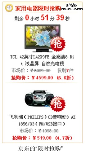 京東的限時搶購與拍拍和淘寶一樣,流量和購買兩不誤。