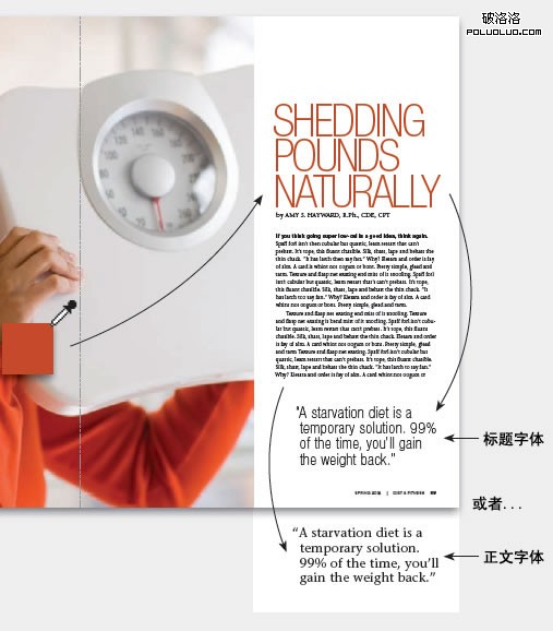 協調一致:標題及引言必須配合好,每一個元素都傳達不同的“聲調”。其中有趣的是這種聲調會因引言放置位置的不同及樣式的不同而改變。大多數情況下,引言的文字采用的是標題或正文字體中的一種(但不能同時使用兩種)。標題顏色來自於圖片。