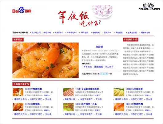 春節前接到了制作春節專題的,這次制作,希望能新年展現在百度首頁的春節專題具有百度風格,也就是說我們理解的新年熱鬧氣氛的專題風格需要做改變。因為專題是為春節回家購物等提供幫助和信息,怎樣將信息表現得易用和友好是最重要的。所以對此類專題設計思路進行了具體分析。感謝錢夫人、blueui、rainbowowo、紅豆派給予的建議和幫助,專題最終通過並獲得了大家的認可。