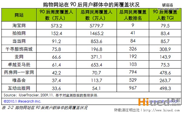 特征二:小型購物網站在90 後用戶群體中的普及度高於整體網民。