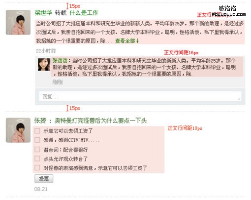 由於大量的信息內容,文字的排版很重要,這裡舉出一些編排上的細節給予參考(以feed為例)。