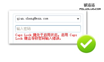 當光標定位於密碼輸入區時,如果此時鍵盤的大寫鎖被不小心打開了,界面會提示用戶此時處於Caps Lock處於啟用的狀態,很可能會出現密碼輸入的錯誤。