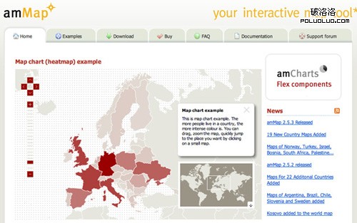 很想在一個項目中為自己生成一個地圖嗎?雖然Javascrip和html5已經出現很久,但是像amMaps基於flash的可替換方案仍然提供一些最強大的互動式地圖的解決方案。幾乎每一個在此文中提到的地圖都可以使用這個(或類似的)系統來創建。