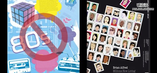 近幾年一直在興起一股混合藝術還有自由插畫的風氣,首先我們不講這是國際設計圈玩剩下的東西,我們單就畫面表現來看,這種風格絕對不是下載一堆AI或者PSD源文件,稍微ctrl+u一下就可以拼湊出來的,亂七八糟的應接不暇和豐富多彩的視覺拼盤,你能察覺到有一點不同吧?